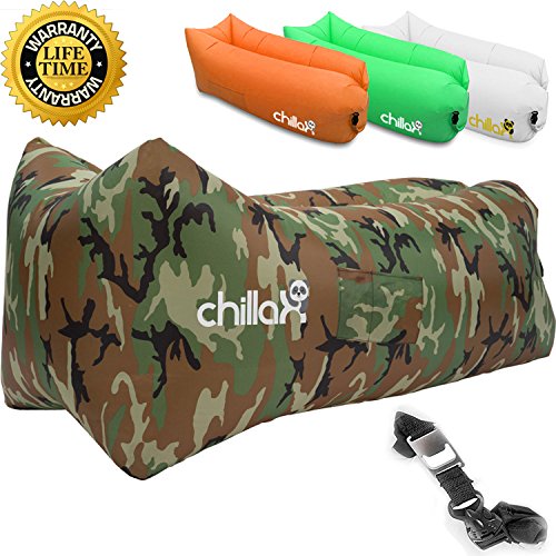 ChillaX Inflatable Lounger with Carry Bag, Securing Stake and Bottle Opener for Travelling, Camping, Hiking, Pool and Beach Parties (Camouflage)