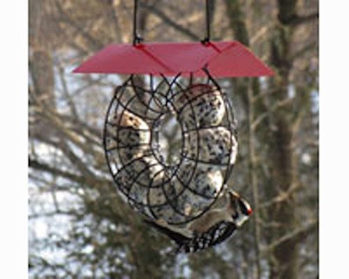 Songbird Essentials - Suet Ball Red Roof Round Wire Circle Feeder Suet Ball Red Roof Feeder. Covered roof provides shelter for birds and suet balls. The removable roof allows for easy filling and cleaning. Has a sturdy wire frame construction. The curved metal loop provides many hanging options. Accepts 6 standard suet balls. Species of birds that frequently visit suet feeders are: Woodpeckers, Flickers, Finches, Titmice, Cardinals, Nuthatches, Buntings, Chickadees, Orioles, Sapsuckers, Wrens, Redpolls, Bluebirds, Pine Siskins, Thrushes, Jays, Warblers and many others! Suet Balls are a popular, nutritious and easy food to add to your backyard bird buffet. It is one of the most popular bird foods during the fall and winter, when birds need good sources of fat and calories to help them survive harsh, cold weather.