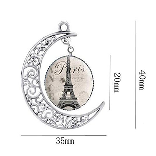 Darkey Wang Women Fashion Carved Moon The Eiffel Tower Time Gemstone Necklace(1#)