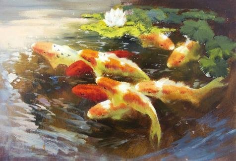 There is some features for 'Carps In The Pond' Oil Painting, 16x23 Inch / 41x60 Cm ,printed On High Quality Polyster Canvas ,this High Quality Art Decorative Canvas Prints Is Perfectly Suitalbe For Bar Artwork And Home Decor And Gifts